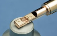 TEM用金属試料の薄片化を目的とした電解研磨装置です。 試料の前後方向から電解液を当てるツインジェット方式により、僅か数分で電子透過性の薄片試料を作成できます。